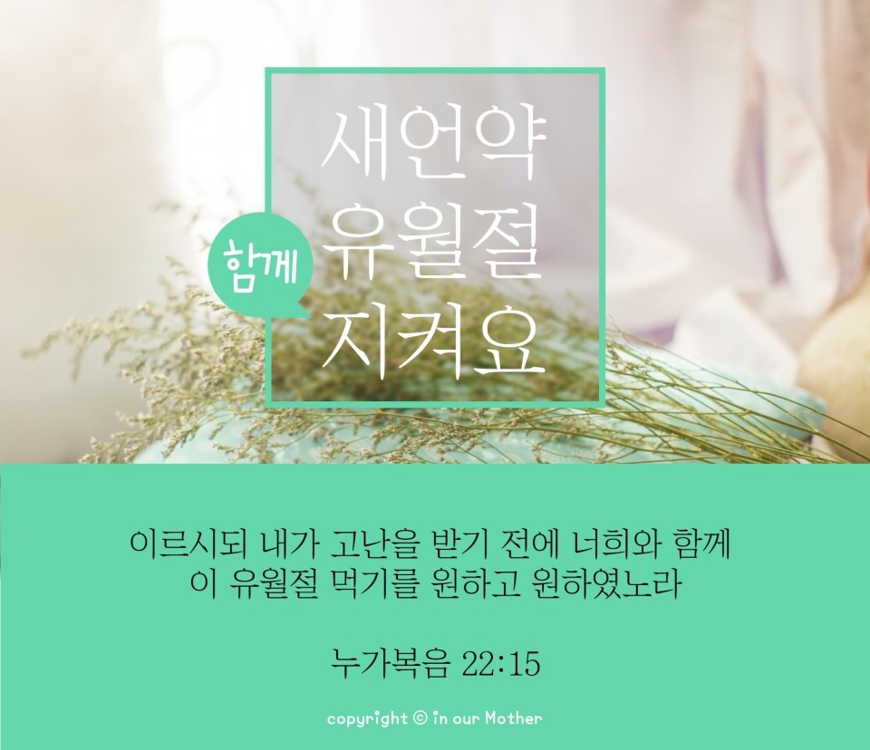 생명을 주러 오신 예수님께서는 우리가 새 언약의 유월절을 지킴으로 영생 얻기를 간절히 원하셨던 것입니다.