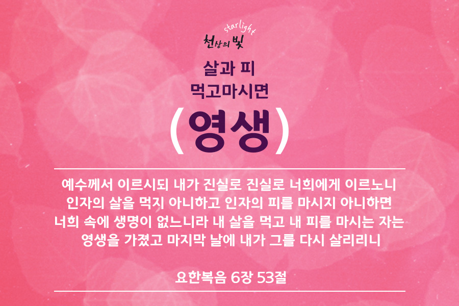 예수님의 살과피를 먹으면 무엇을 얻는다고 하셨습니까? 영생입니다. 그렇다면 예수님의 살과 피를 먹고 마시는 자는 영생을 얻는다는 것입니다. 예수님의 살과 피를 어떻게 먹고 마실 수 있을까요?