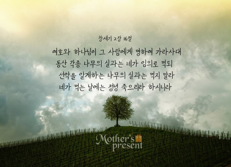 성경에 많은 비유가 기록되어 있는데 그 가운데 창세기에 기록된 에덴동산의 역사는 하늘에서 범죄하고 이 땅에 떨어진 인류의 범죄를 알려주고 있습니다. 이 비유 속에 감추어진 참된 의미를 깨닫는다면 인류가 짊어지고 있는 사망의 고리를 풀어낼 수 있어야겠습니다.