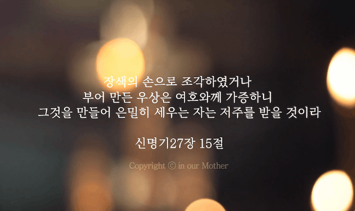 계속해서 우상 숭배를 엄중하게 금하신 하나님의 말씀에 대하여 좀더 구체적으로 알아 봅시다.