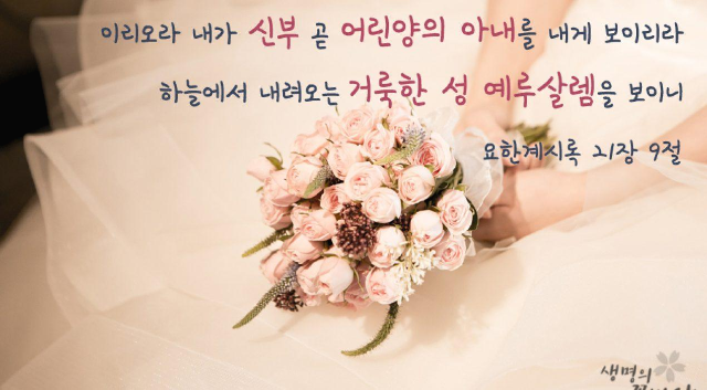그래서 사도 요한은 계시를 통해 어린양의 신부이신 새 예루살렘이 하늘에서 내려오시는 모습을 목격했던 것입니다.