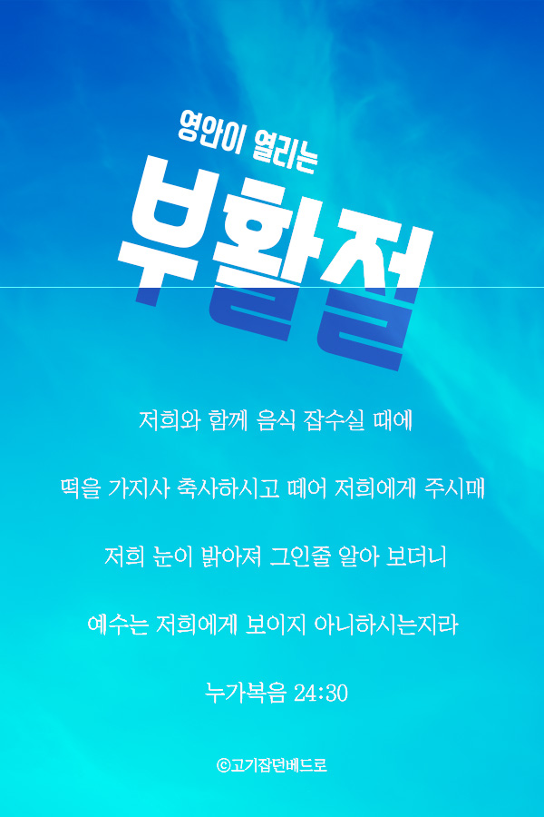 그날에 예수님께서 제자들에게 떡을 떼어 주시자 그 들의 눈이 밝아져 예수님을 알아보게 되었습니다.