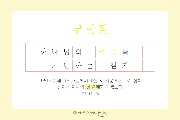예수님께서 부활하신 부활절은 하나님의 크신 권능을 기념하는 날입니다. 이 날을 옛 시대에는 초실절이라 일컬었으며 무교절 후 첫 안식일 이튿날(일요일)에 거행해 내려온 거룩한 하나님의 절기입니다.