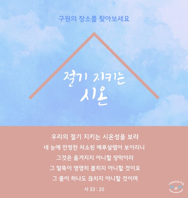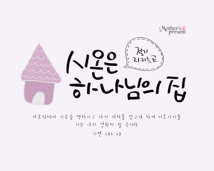 하나님께서 시온을 택하시고, 시온을 영원히 쉴 곳이라고 하였습니다. 이렇게 시온은 하나님의 처소인 동시에 마지막 재앙의 날에 우리의 구원을 위해 예비하신 도피처이고 영생의 축복까지 허락하신 축복의 장소입니다.
