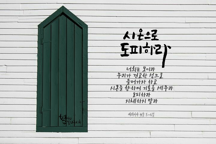 하나님께서 장차 다가올 재앙의 날과 구원을 위해서 시온을 건설하셨고 또한 하나님의 음성을 들을 수 있는 귀를 가진 사람들은 지체하지 말고 시온으로 도피하라고 일러주고 계십니다.